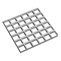 Грильято GL-24 100x100, высота 34 мм, ширина 24 мм, металлик — подвесной потолок с решетчатой конструкцией, выполненный из алюминия с металлическим покрытием. Ячейки размером 100x100 мм и профиль высотой 34 мм создают легкость и четкие геометрические линии. Металлический оттенок придает потолку стильный блеск, улучшая освещенность и подчеркивая современный и элегантный вид помещения.