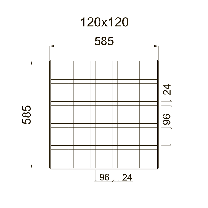 Грильято GL-24 120x120, высота 34 мм, ширина 24 мм, окраска по RAL — это стильное и долговечное решение для создания потолков, которые придадут вашему интерьеру современность, индивидуальность и гармонию.