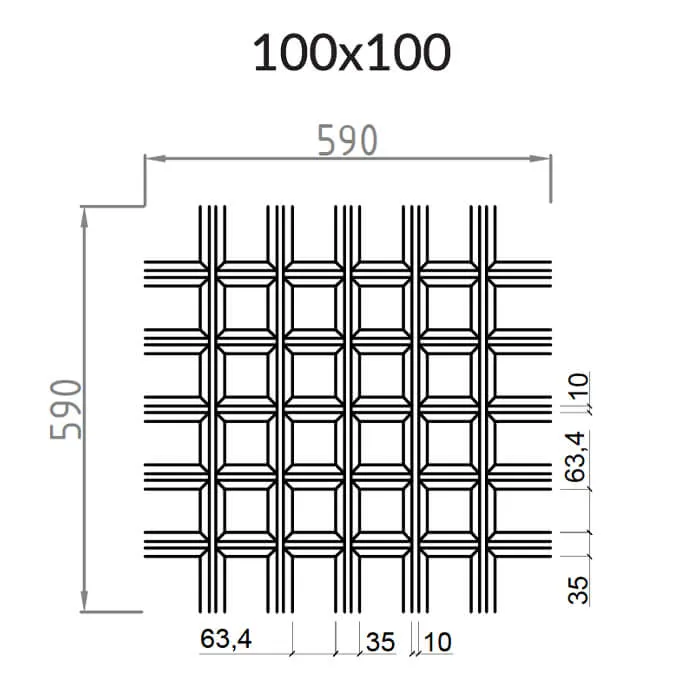 - Размер ячейки: 100х100 мм — улучшенная вентиляция и визуальное расширение пространства.