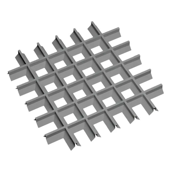 Грильято Пирамидальная ячейка 100х100 мм, металлик, высота 42.5 мм, ширина 10 мм — это потолок с открытой конструкцией, который сочетает в себе прочность, долговечность и стильный минималистичный дизайн.