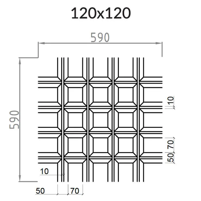- Размер ячейки: 120х120 мм — улучшенная вентиляция и визуальное расширение пространства.