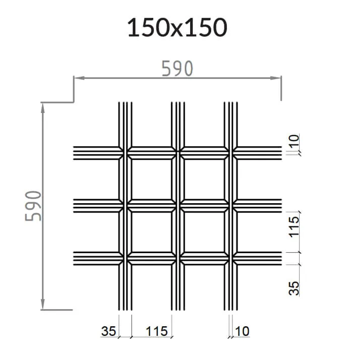 - Размер ячейки: 150х150 мм — улучшенная вентиляция и визуальное расширение пространства.