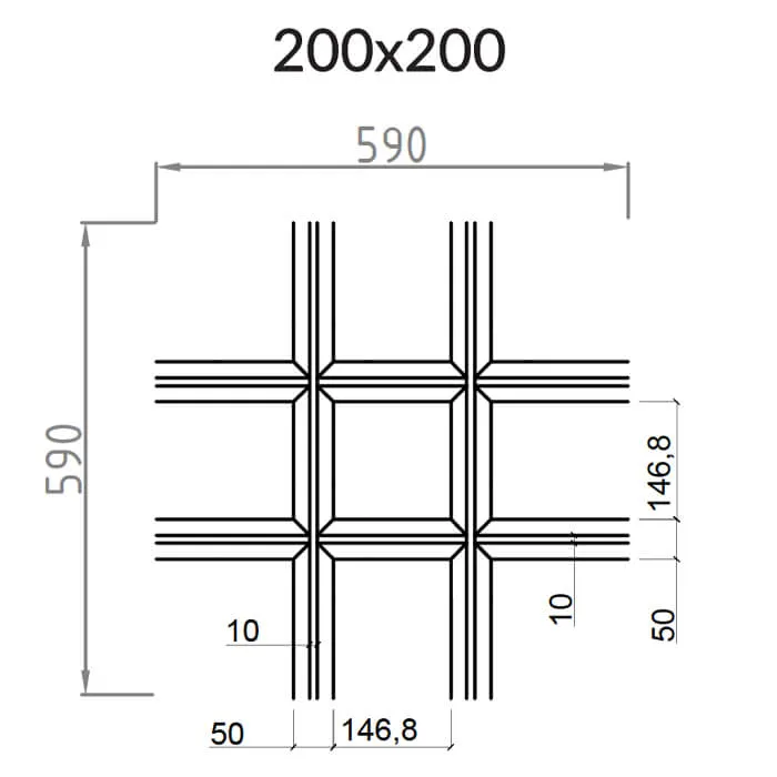 - Размер ячейки: 200х200 мм — улучшенная вентиляция и визуальное расширение пространства.