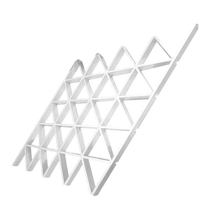 Грильято Треугольное GTA-150 150х150х150 мм, белый матовый, высота 40 мм, ширина 10 мм — это потолок с треугольной решетчатой конструкцией, который сочетает в себе прочность, долговечность и современный дизайн.