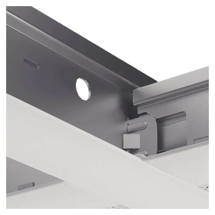Система Retail 24 Zn предоставляет возможность гибко подходить к проектированию потолков, легко монтируется и демонстрируется, обеспечивая быстрый доступ к запотолочному пространству. Эта рейка поддерживает потолочные панели, создавая устойчивую и долговечную конструкцию.
