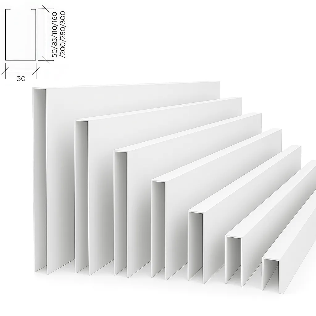 Рейка кубообразная Албес A200S белый матовый — потолочный металлический профиль размером 30×200 мм, предназначенный для архитектурных решений в крупных общественных пространствах. Изготавливается из алюминия или оцинкованной стали и окрашивается в стойкий белый матовый цвет.