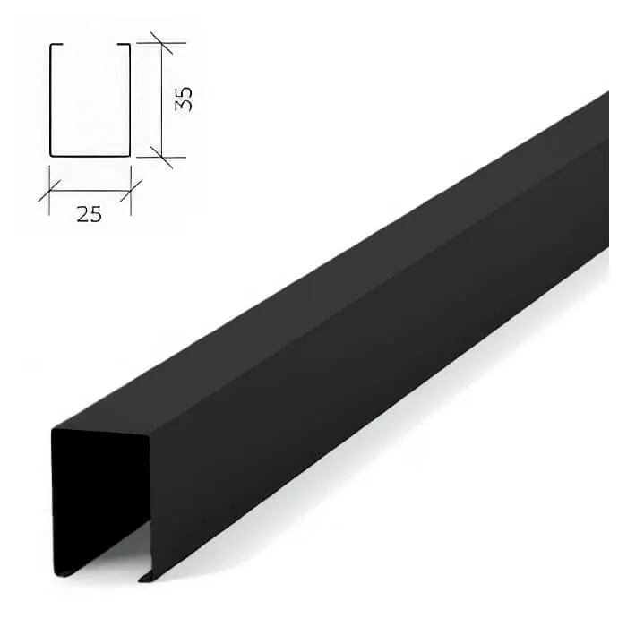 Рейка кубообразная Албес A25/35/S черный — декоративный алюминиевый профиль для подвесных потолков с гребёнкой ВТ-4-60, обеспечивающий точную геометрию и стильный внешний вид. Изделие подходит для интерьеров в стилях лофт, хай-тек, индустриальный и минимализм.