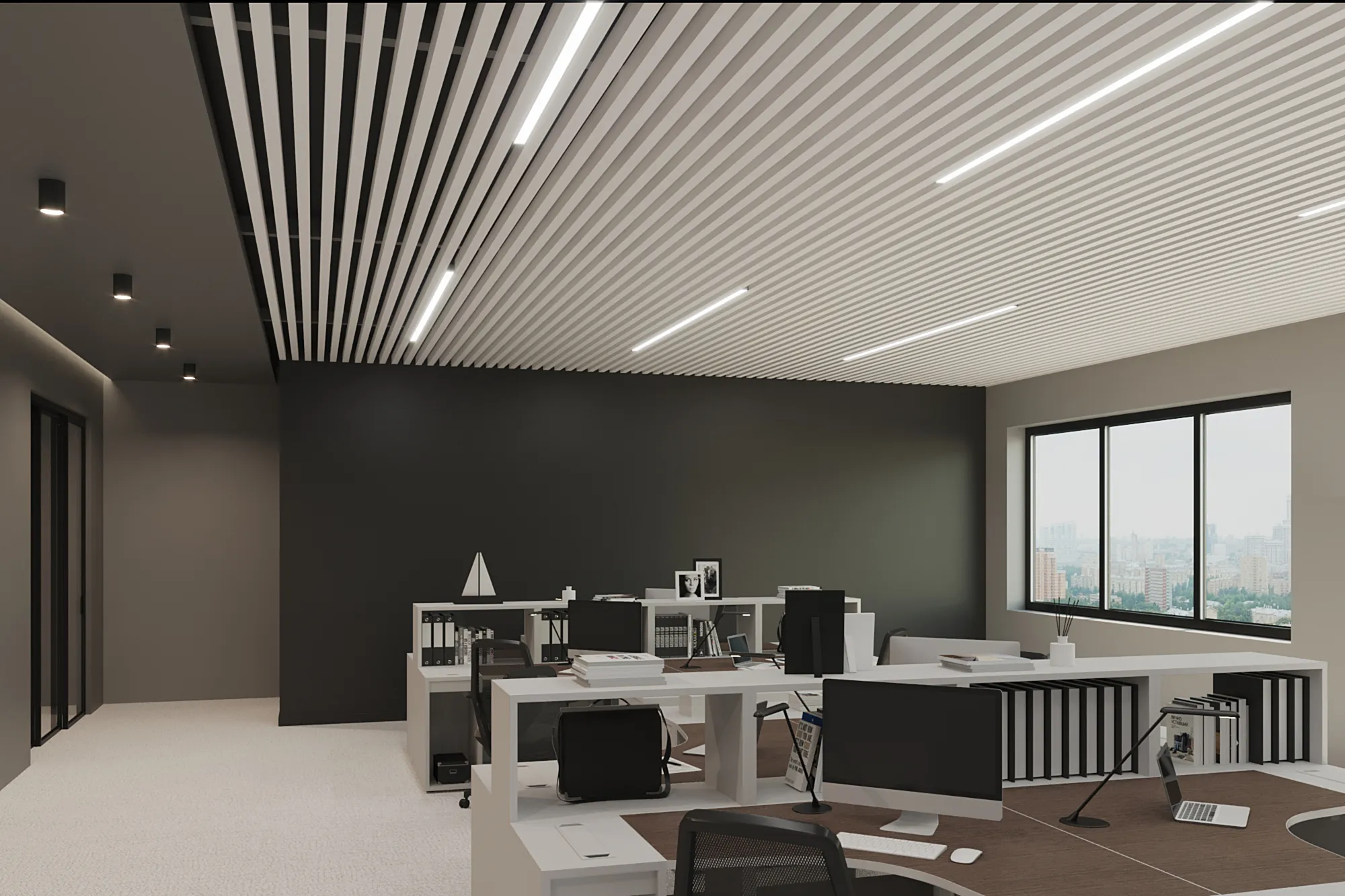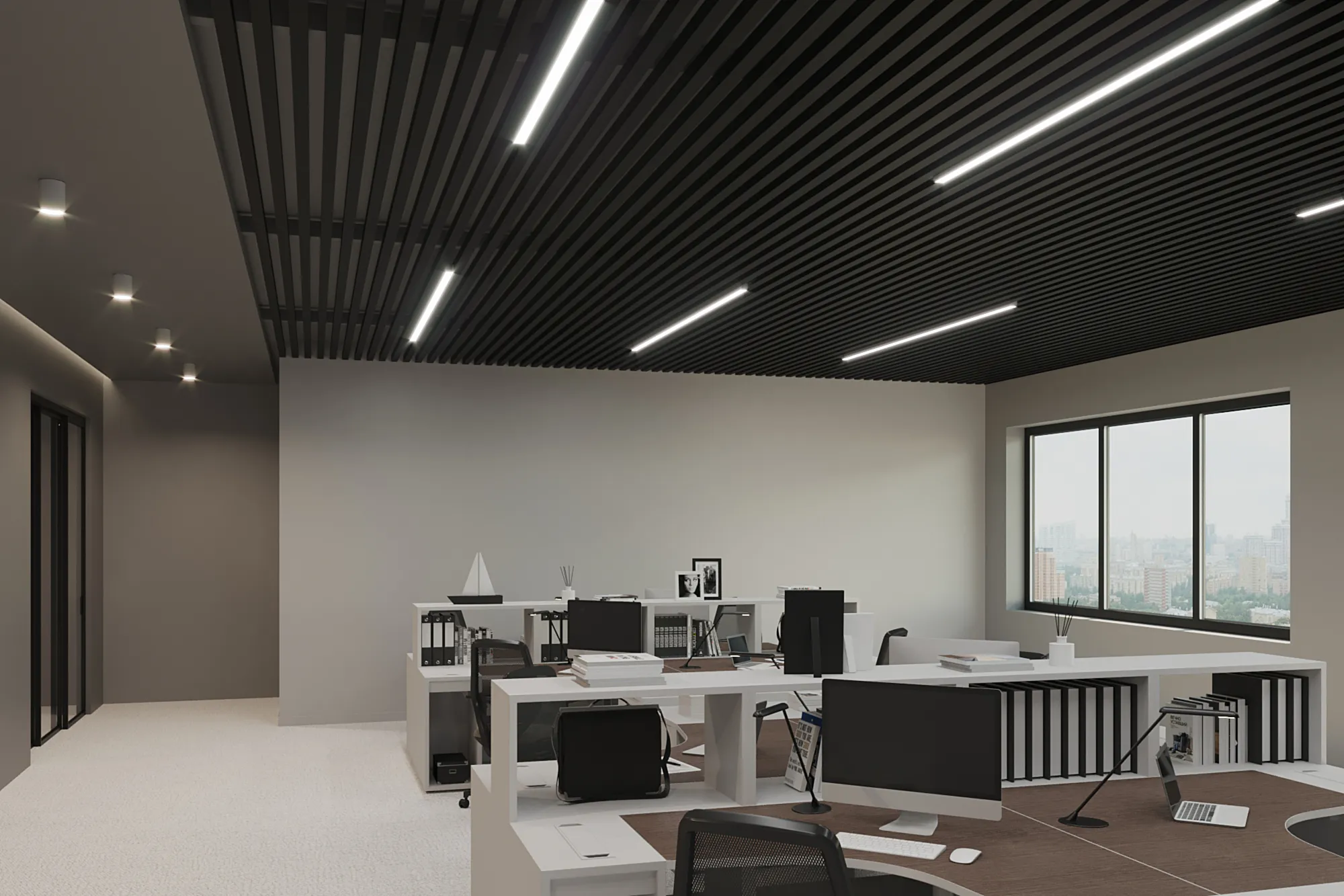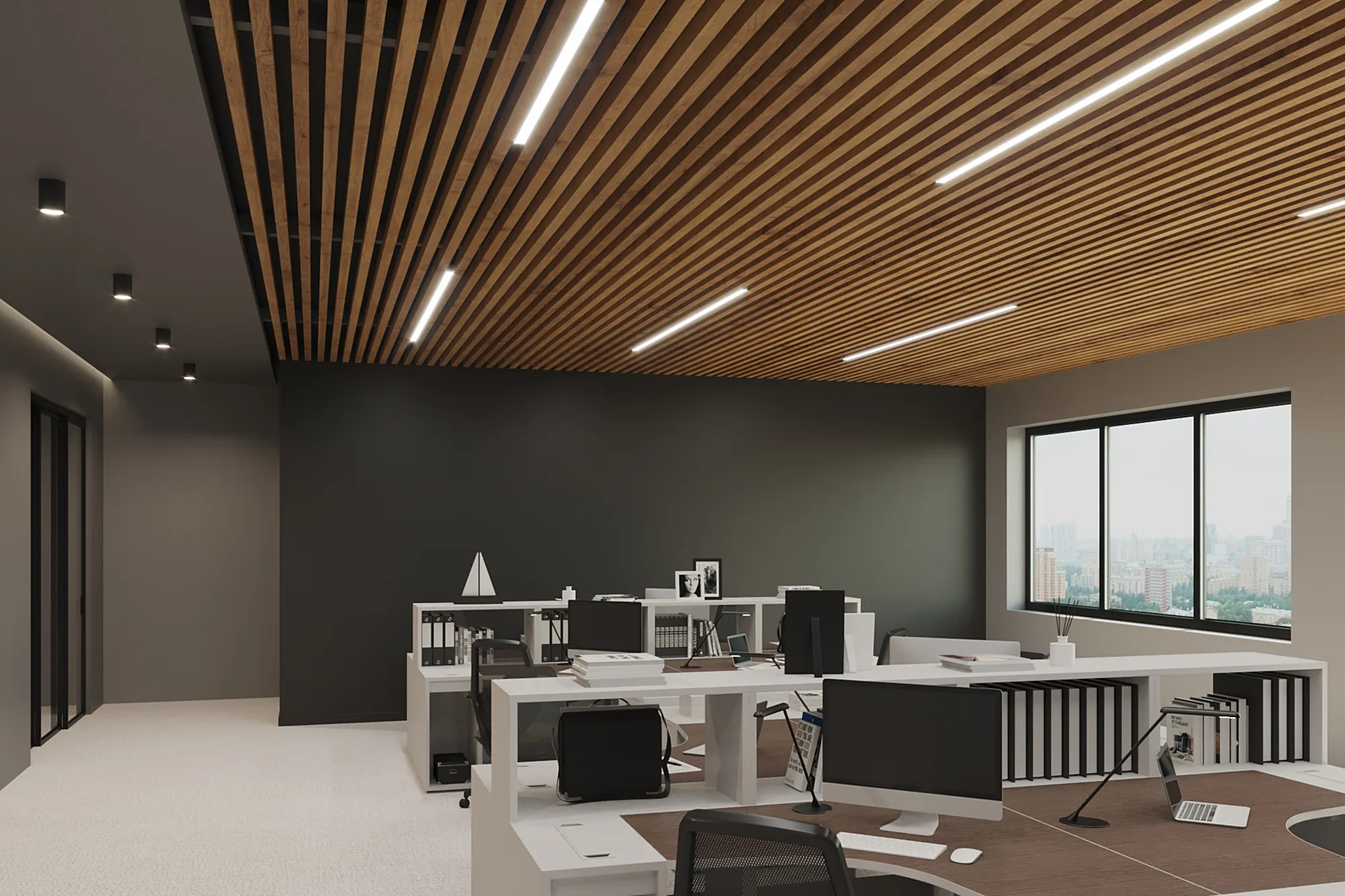 Благодаря увеличенной высоте, рейка идеально подходит для пространств с высокими потолками и используется в интерьерах в стилях техно, минимализм, административный дизайн. Возможна окраска по RAL, текстура под дерево и индивидуальная комплектация под проект.