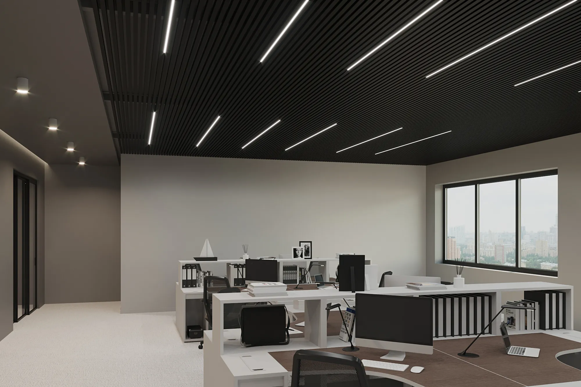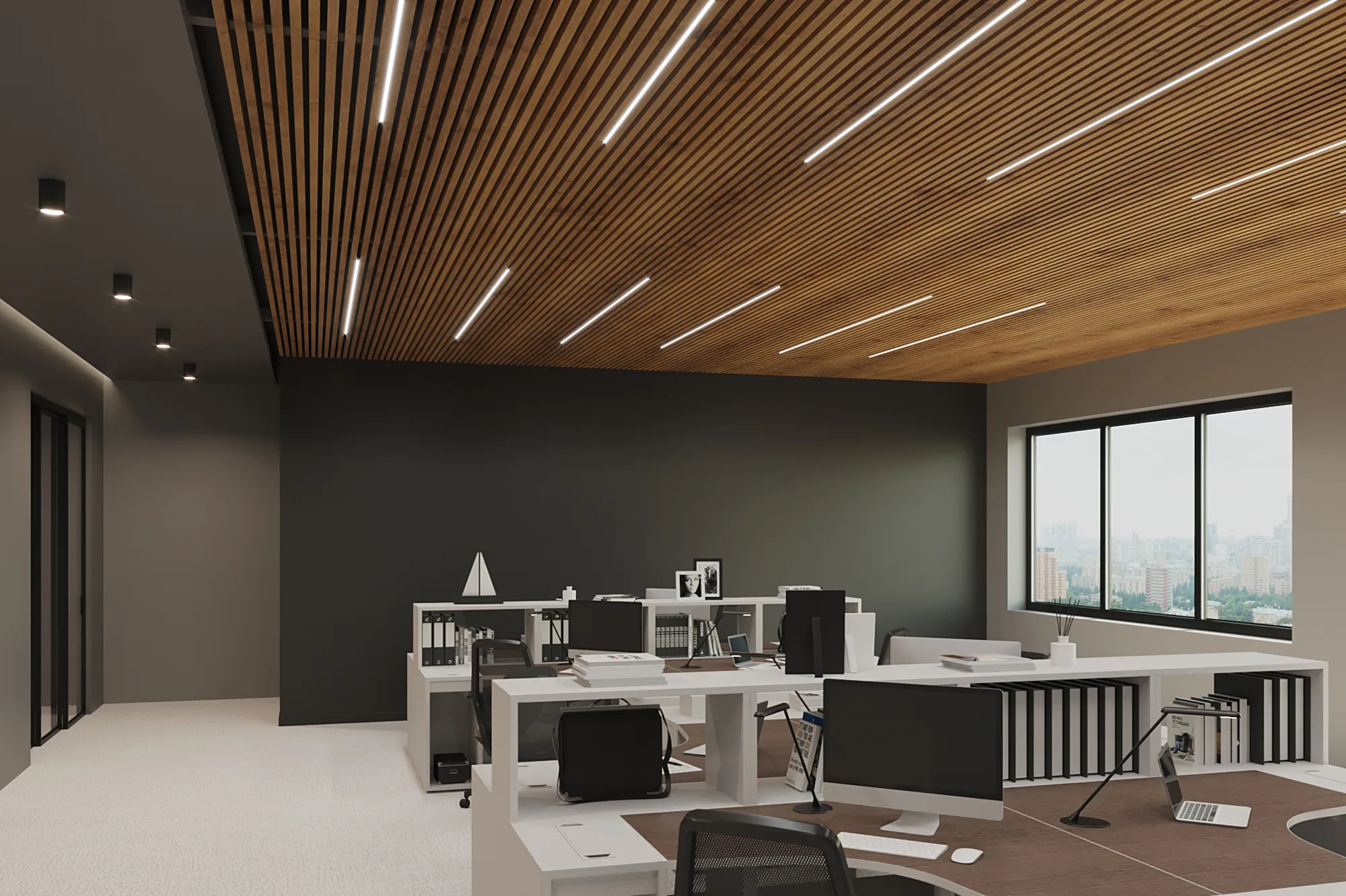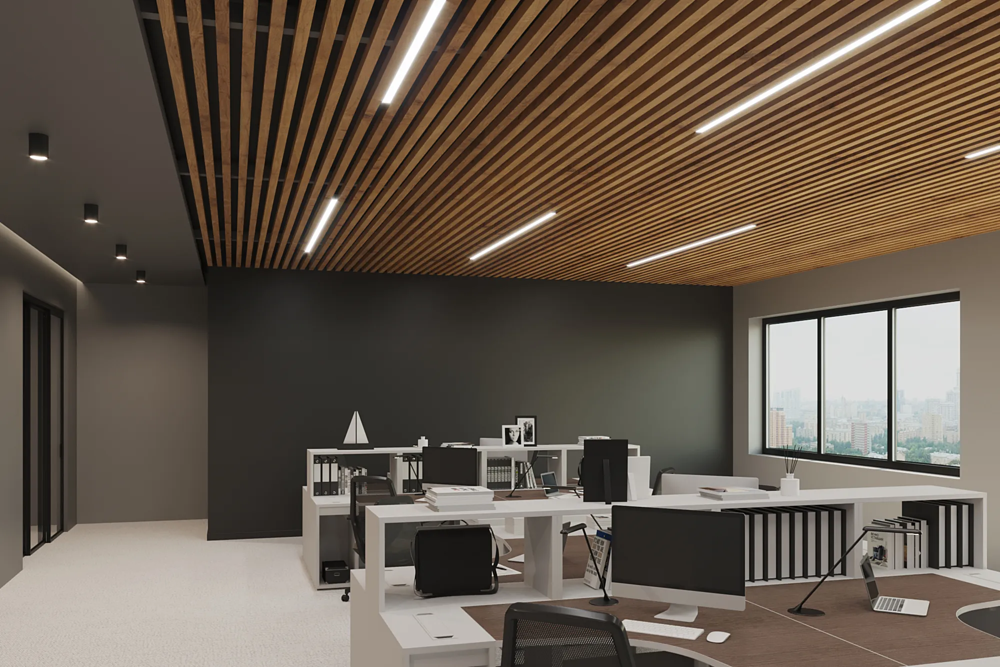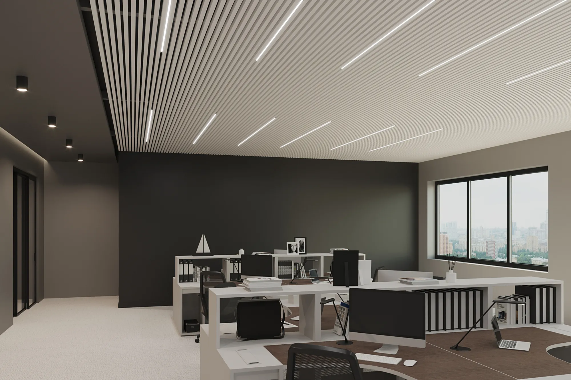 Благодаря увеличенной высоте, рейка идеально подходит для пространств с высокими потолками и используется в интерьерах в стилях техно, минимализм, административный дизайн. Возможна окраска по RAL, текстура под дерево и индивидуальная комплектация под проект.