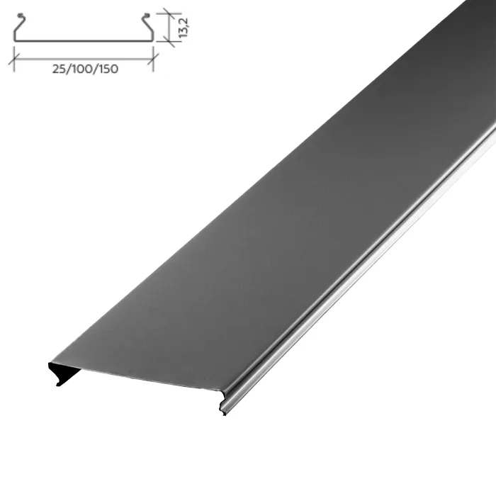 Потолок A150AS металлик матовый — это алюминиевая рейка 150 мм с серым порошковым покрытием и матовой текстурой. Подходит для интерьеров в стиле хай-тек, минимализм, техно. Отлично вписывается в офисные, торговые, технические и административные пространства.