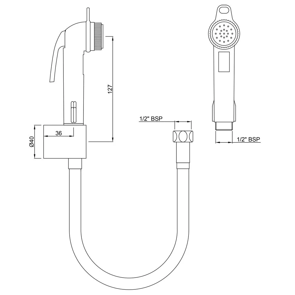 Essco ALE-BLK-585 — это гигиенический душ в черном цвете, изготовленный из прочного ABS-пластика с современным матовым покрытием. Комплект включает: