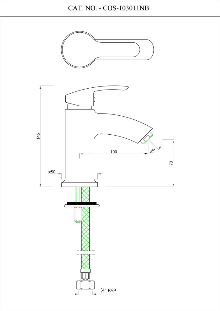 Essco Cosmo COS-CHR-103011NB — это однорычажный смеситель для умывальника с гибкой подводкой и без донного клапана, идеально подходящий для современных ванных комнат и раковин с открытым сливом.